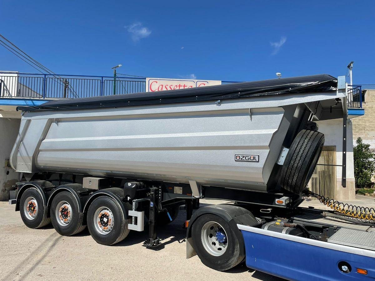 SEMIRIMORCHIO RIBALTABILE NUOVO DI FABBRICA OZGUL VERSIONE CON CASSA TONDA IN ACCIAIO CON PISTONE A SPINTA FRONTALE AVENTE LE SEGUENTI PRINCIPALI CARATTERISTICHE: